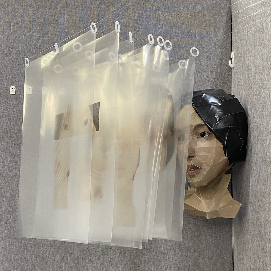 As a stranger, how would you know and comprehend me? In this work, a 3D virtual paper self-portrait is placed behind the intricate and overlapped films with the fragment of my portraits and fictional personal information printed on, symbolizing my identity in the vast and complex Internet world. The dynamic and the substitution of film paper in this work expose the fickleness of the internet. The work reflects on how the internet and social media affect the interaction between people.